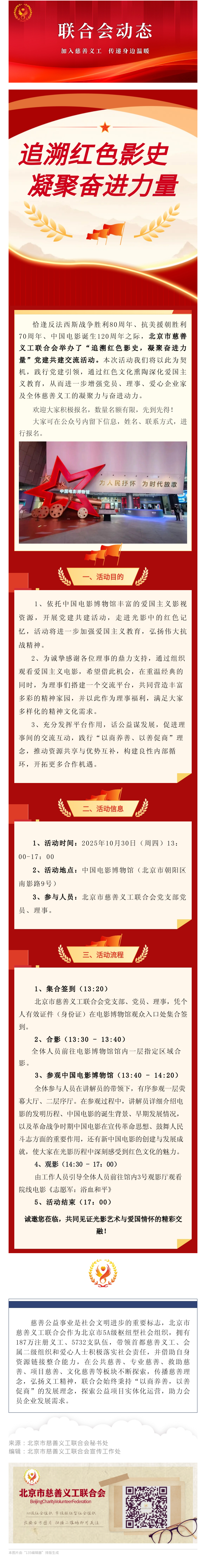 【活动预告】“追溯红色影史 凝聚奋进力量” 北京市慈善义工联合会党支部党建共建交流行活动预告